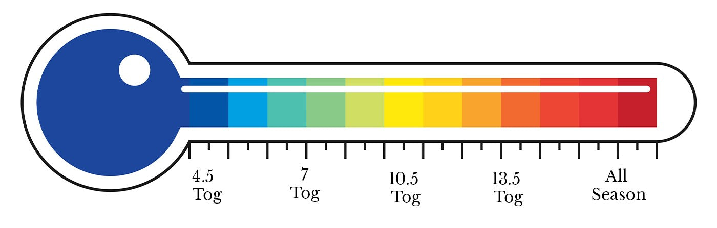 Available in 4.5, 7.0, 10.5, 13.5 and Four Seasons tog options.
