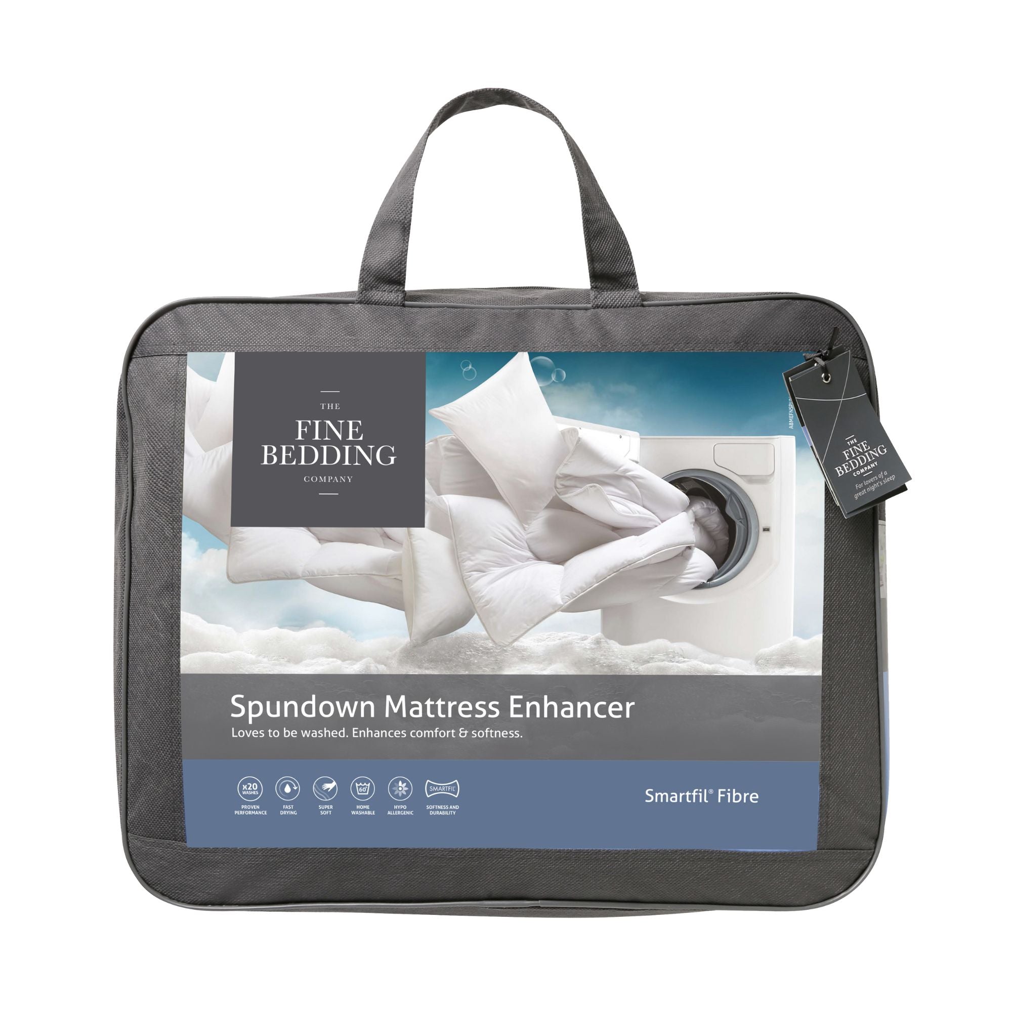 Our Spundown Mattress Enhancer is a washable mattress topper with a luxurious finish. Filled with 100% Smartfil fibres that are encased in a peach, soft cover, you’re sure to fall in love with this washable mattress topper. Wash our mattress topper in the comfort of your home at 60°C to kill off dust mites, a great added peace of mind for allergy sufferers.