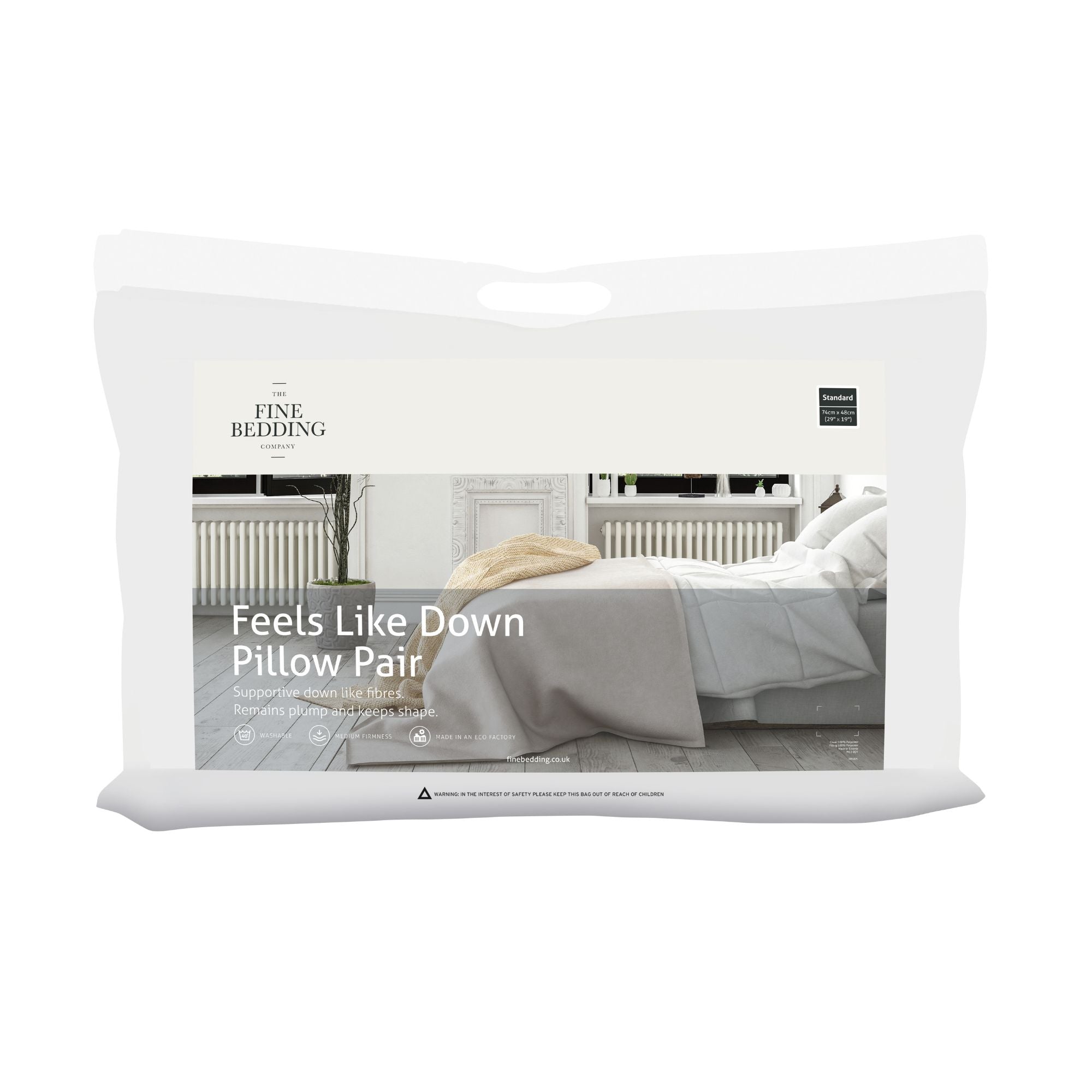 Experience cloud like comfort with our Feels Like Down Pillow Pair. Filled with supportive, down like fibers, these pillows stay plump night after night and keep their shape for lasting comfort.
