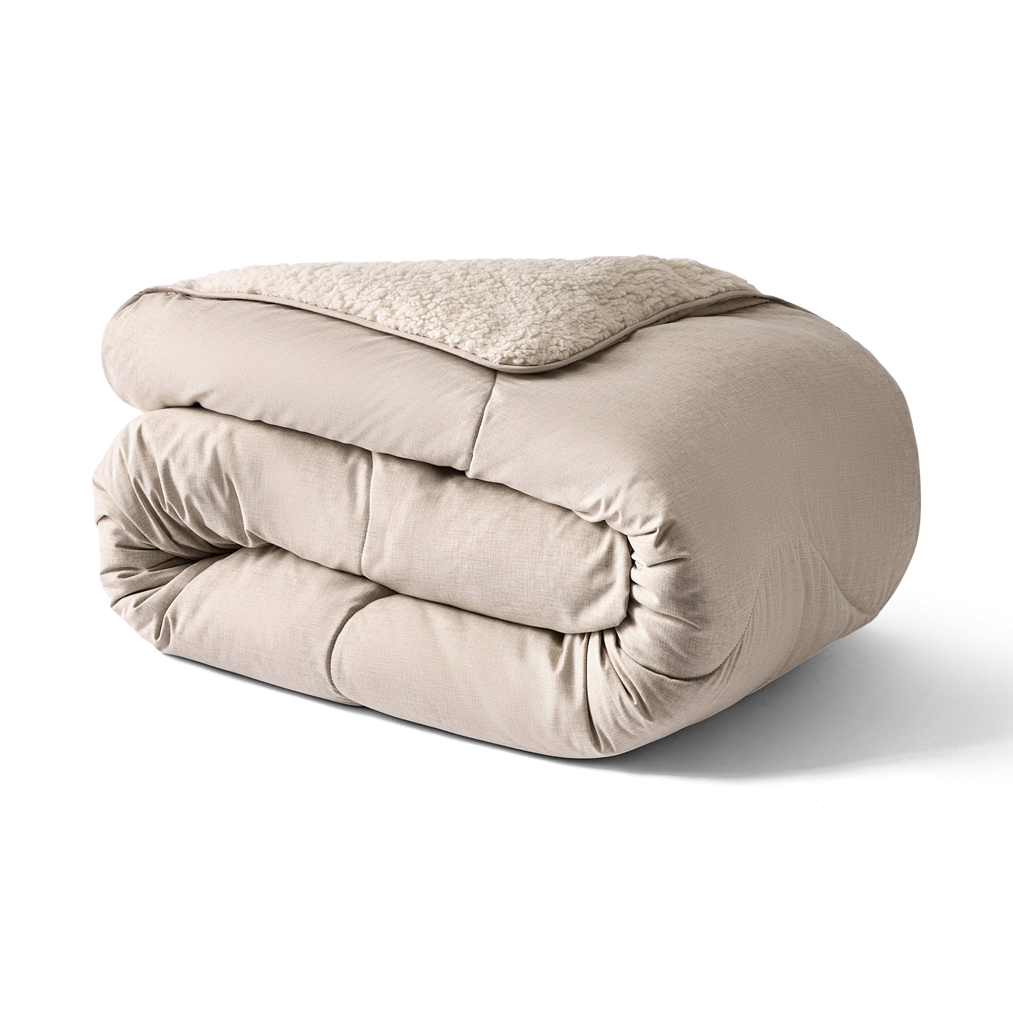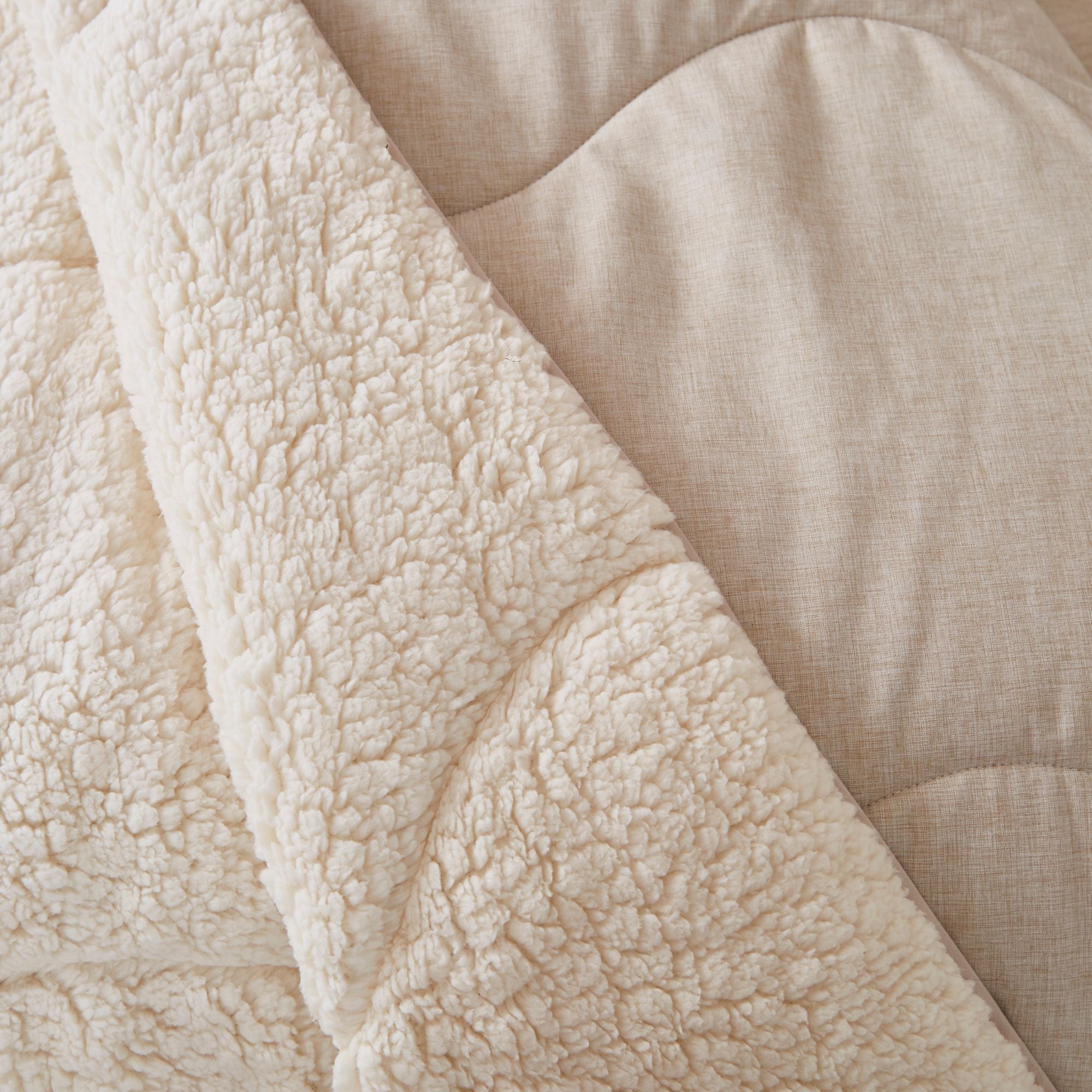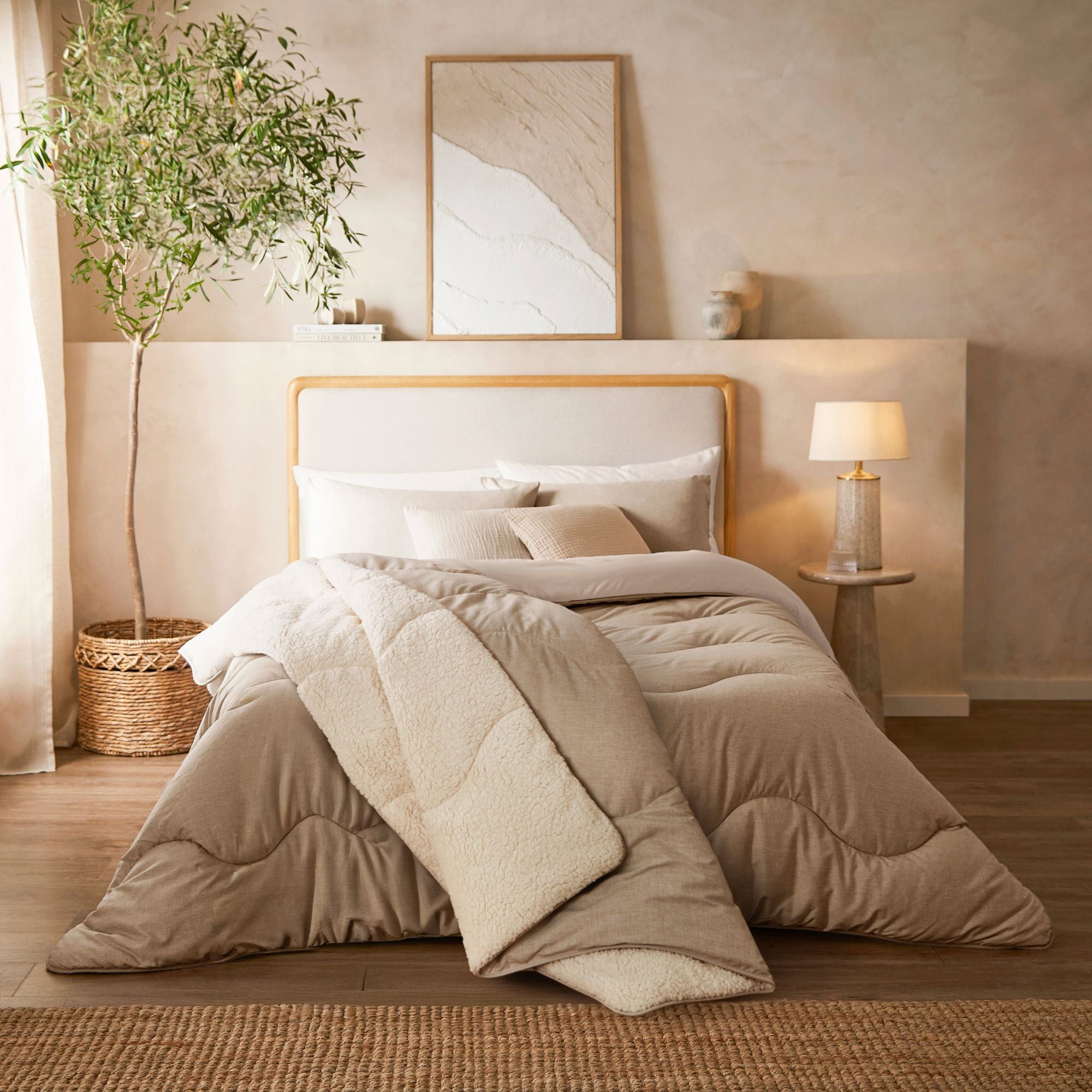 Featuring fan-favourite Soft Weave Natural Oat with a super-soft melange texture on one side and a cloud-like Sherpa fleece lining for instant warmth on the other. It's generously filled with our innovative Smartfil® fibres, made from 100% recycled PET plastic bottles - offering the warmth of a 9 Tog duvet, but with an ultra-lightweight feel.