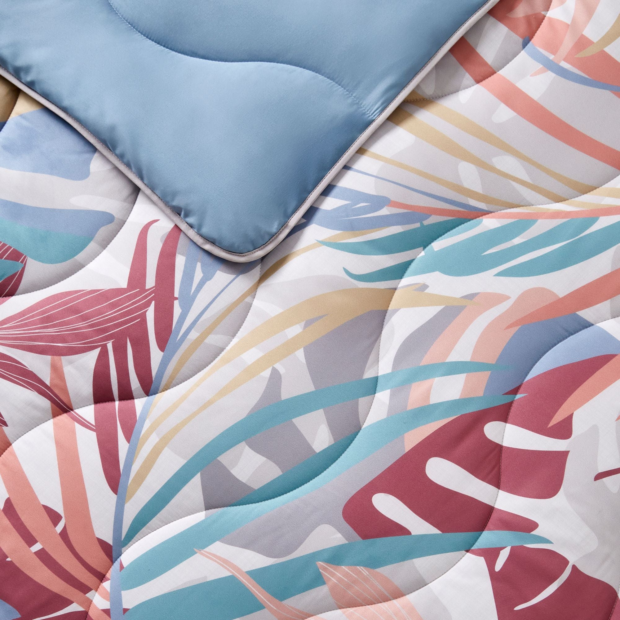 Add a playful, tropical touch to your home with Sunset Palms. Modern, colourful, and botanical, this print brings a vibrant, sun-kissed feel to your bedroom. The print is paired with a Dusk Blue reverse and Dusk Blue pillowcase(s).