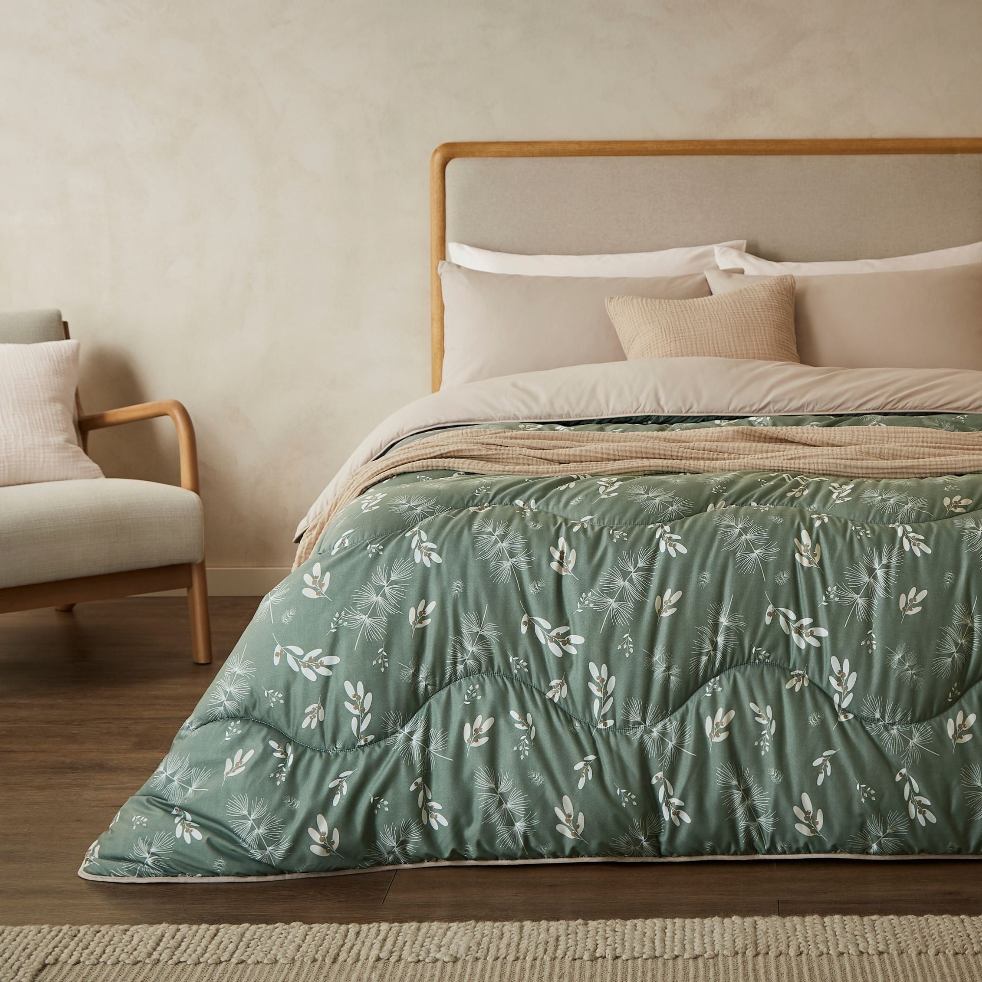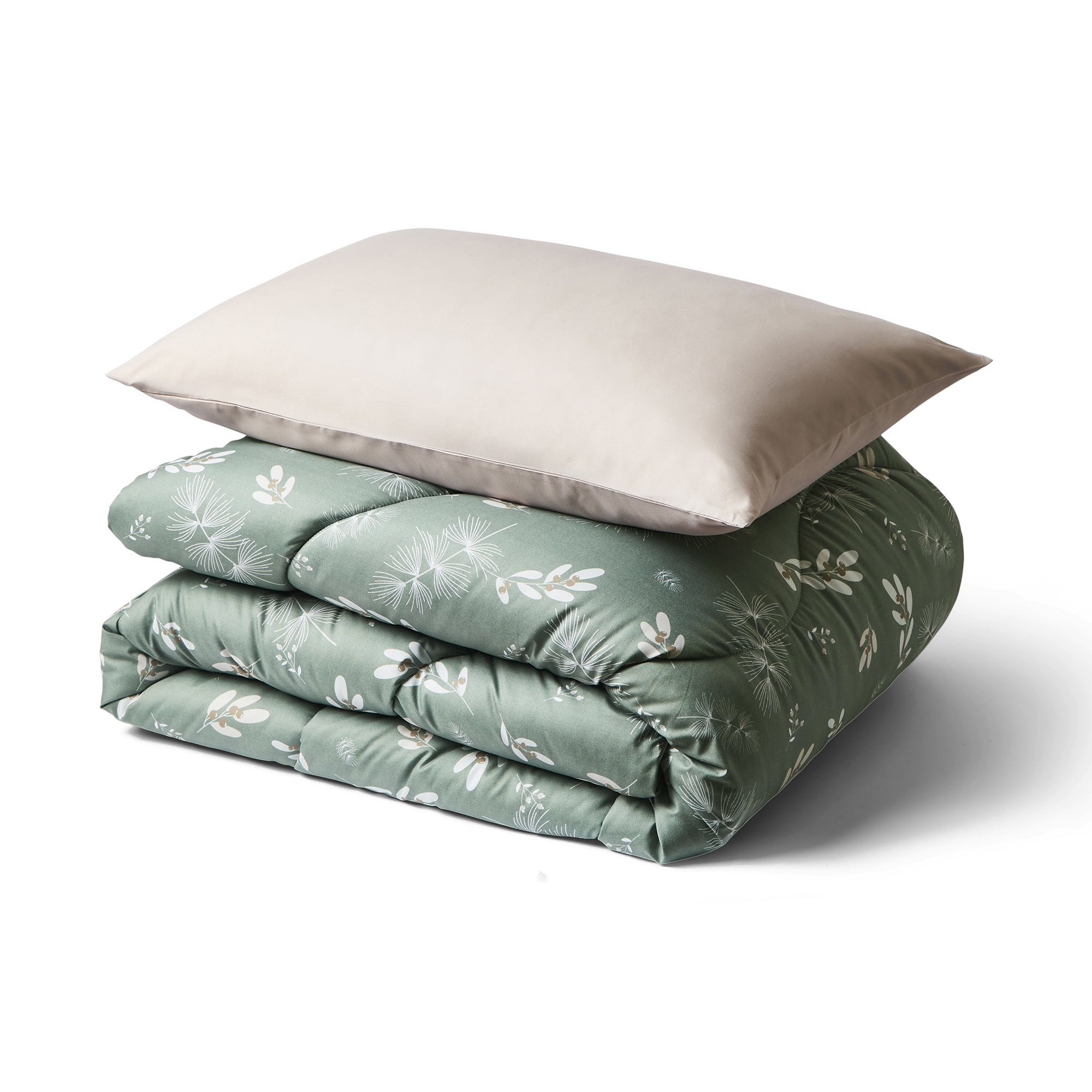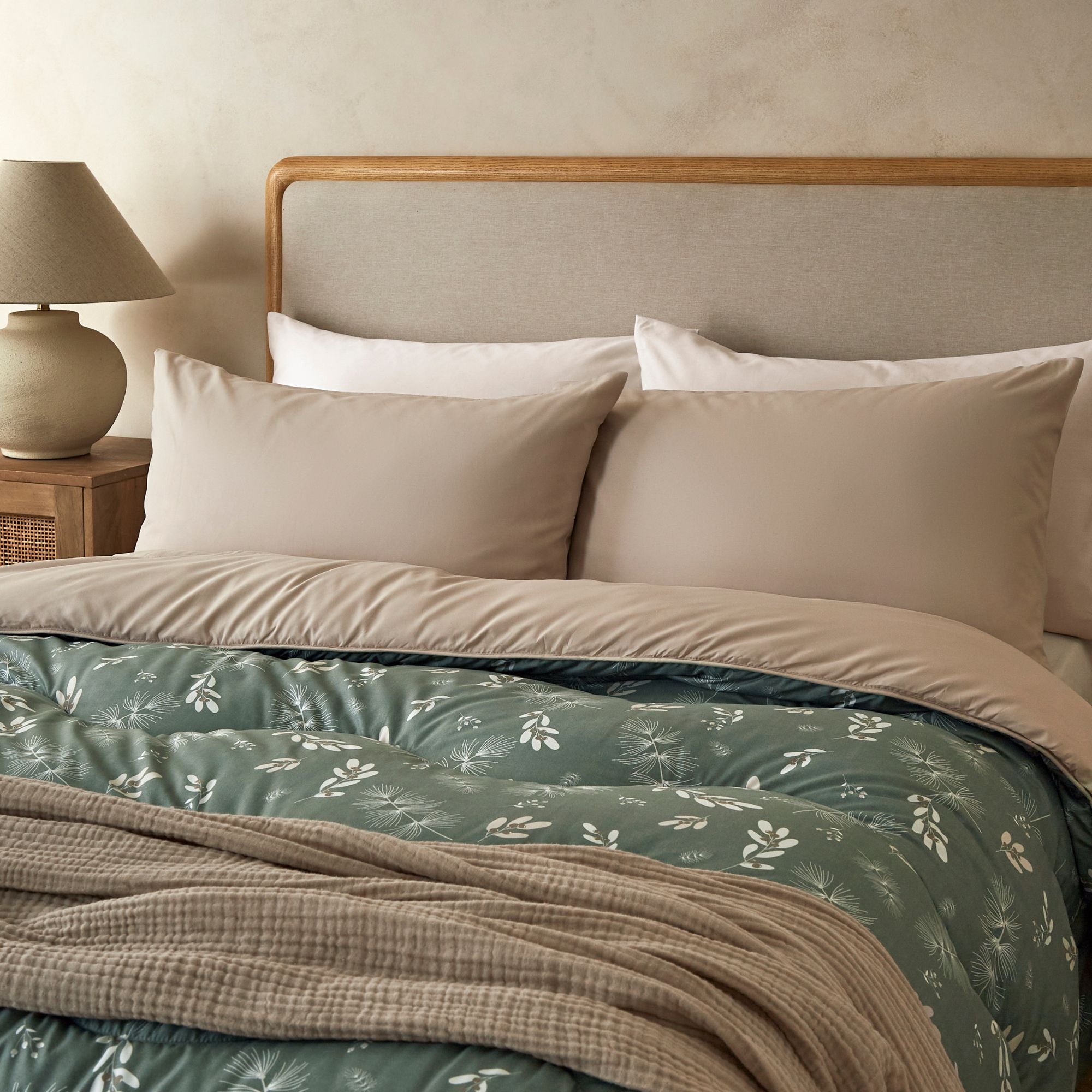 Introducing our iconic Coverless Duvet Set in a brand new, limited edition design – the perfect companion for cosy Autumn-Winter nights. Comes with colour-coordinating pillowcases to complete the look. The Winter Sprigs design captures a classic Nordic feel with delicate pinecones and forest-inspired details. Set against a warm olive green background with a Natural Oat reverse, this design is rich in autumn charm and brings a cosy, seasonal touch to your bedroom.