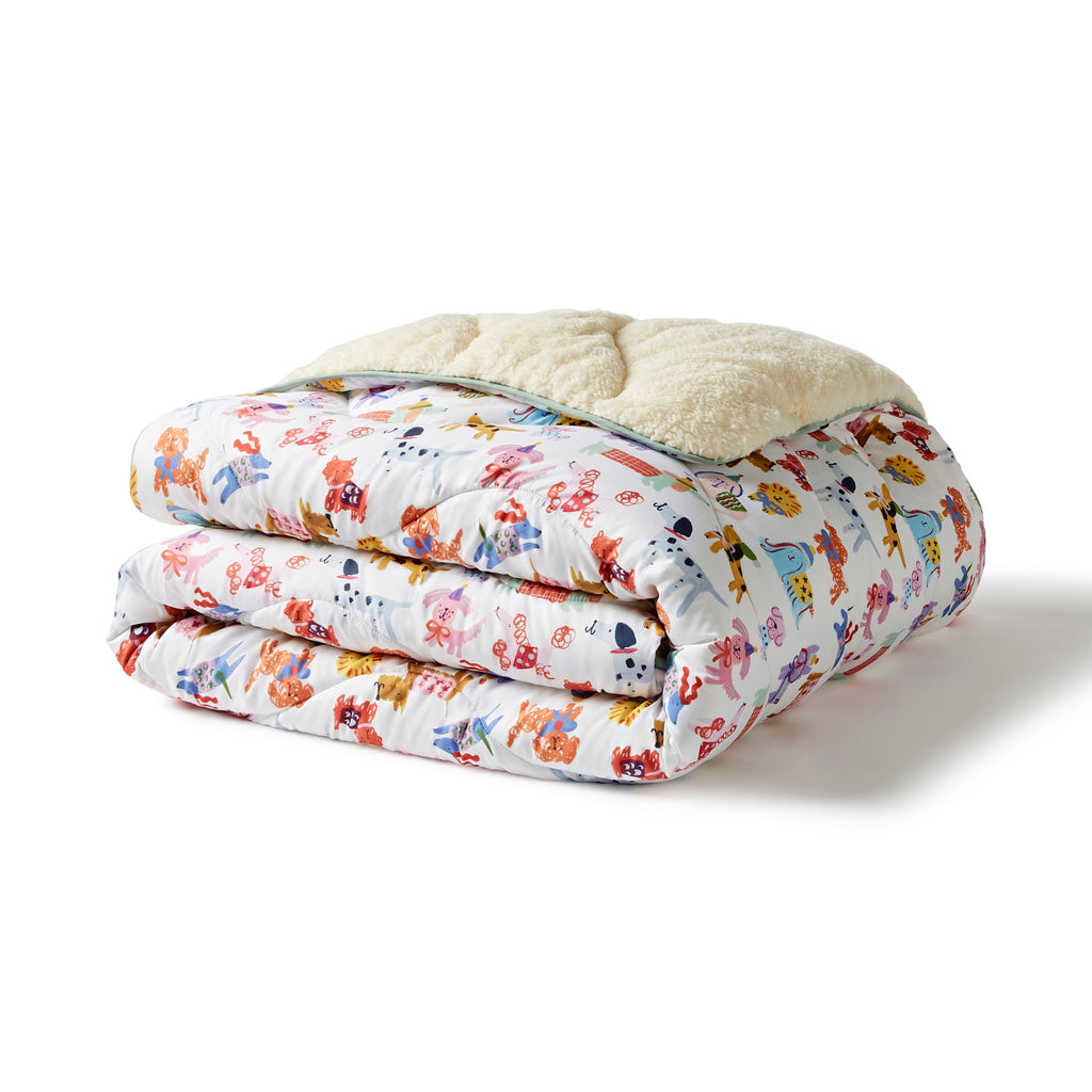 Stay cosy and warm wherever you decide to rest with this exclusive Night Lark® x Eleanor Bowmer Happy Dogs Cosy Sherpa Throw. Add a stylish touch to any room with this fun and patterned blanket design, featuring poppers for wearable comfort! Perfect for gifting friends and family this Christmas.